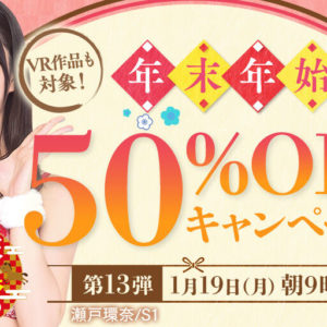 FANZAで「年末年始 50%OFFキャンペーン」第13弾が始まったぞ!